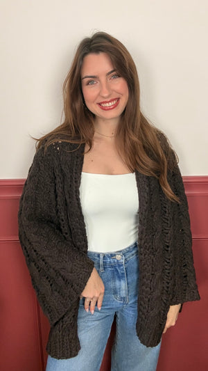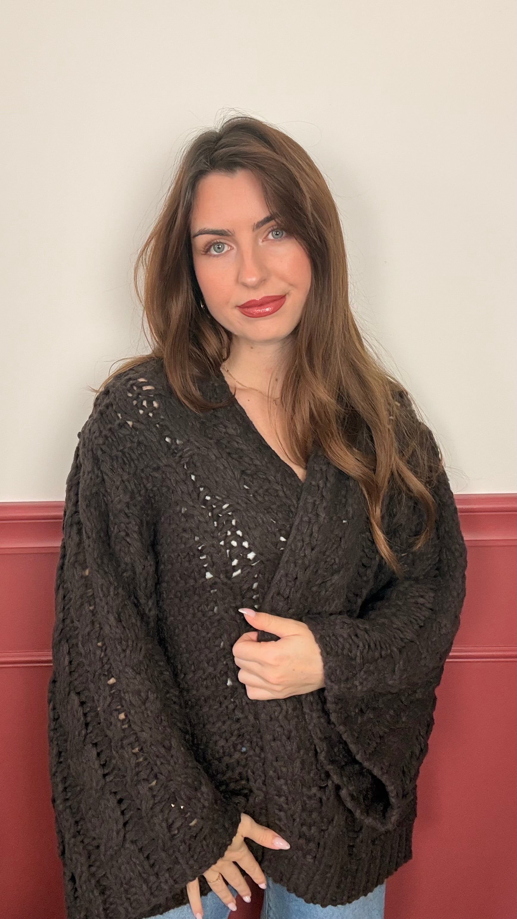 Apportez une touche bohème et chaleureuse à vos tenues avec ce gilet en maille épaisse, à la fois confortable et élégant. Sa texture travaillée et son tricot ajouré lui donnent un style artisanal et tendance, parfait pour la mi-saison comme pour les journées plus fraîches.