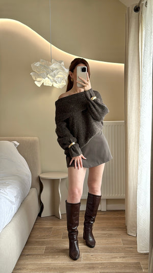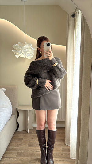 Craquez pour ce pull XXL en grosse maille, une pièce tendance qui combine chaleur et style. Son col Bardot met subtilement en valeur les épaules pour une allure à la fois décontractée et séduisante.