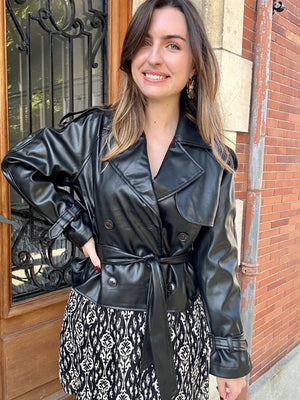 Créez un look chic et sophistiqué : Portez votre trench en simili cuir sur une robe moulante ou une jupe crayon, avec des talons hauts et des accessoires assortis. Attachez la ceinture pour marquer votre taille et ajouter une touche féminine à votre tenue.
